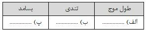 یک موج سینوسی از قسمت نازک طناب وارد قسمت ضخیم میشود. هر یک از کمیتهای طول موج، تندی و بسامد موج عبوری در مقایسه با موج فرودی چگونه تغییر میکند؟