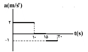 شکل زیر نمودار شتاب ـ زمان یک متحرک را نشان میدهد که در امتداد محور x حرکت میکند. با فرض $({V_0} = - 10\frac{m}{s})$