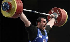 در شکل رو به رو، بهداد سلیمی را می بینید که وزنه ای بسیار سنگین را به راحتی بلند کرده است. در این حالت، کدام ماهیچه او در حال استراحت است؟