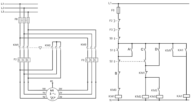 مدار قدرت و فرمان راهاندازی یک موتور الکتریکی در شکل زیر نشان داده شده است. C ،B ،A و D بهترتیب از راست به چپ کدام است؟