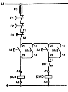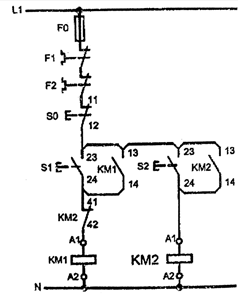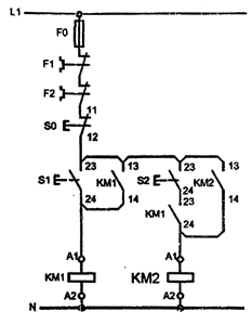 اگر راهاندازی موتور M2 وابسته به موتور M1 باشد مدار فرمان مناسب کدام است؟