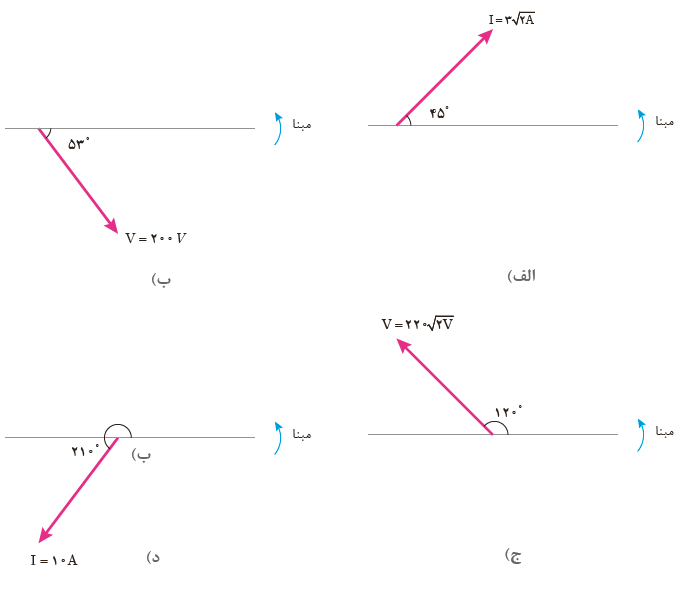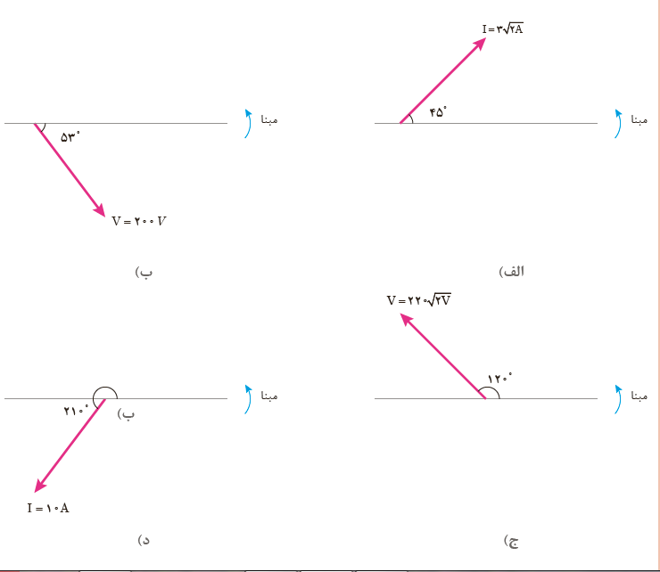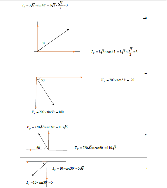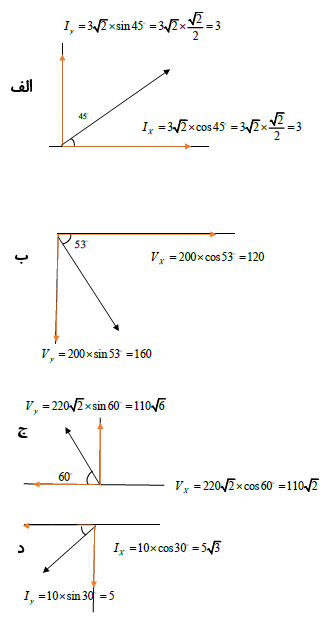 مؤلفه افقی و عمودی بردارهای زیر را به دست آورید.