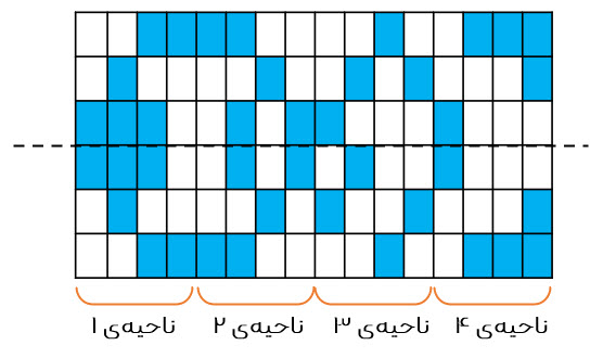 با توجه به خط تقارن، نیمهی دوم شکل در کدام ناحیه درست رسم نشده است؟