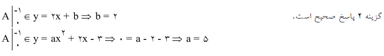 اگر نمودارهای دو تابع با ضابطههای $a{{x}^{2}}+bx-3\,\,,\,\,y=2x+b$ روی محور $x$ها در نقطهای به طول $-1$ متقاطع باشند $a$ کدام است؟