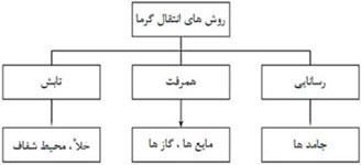 [تابش - همرفت - خلاء - گازها - غیر فلزات - جامدها - مایع ها - محیط شفاف]