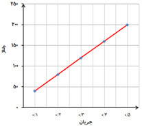 ب) در چه ولتاژی، جریان لامپ برابر 0/2 آمپر است؟