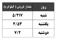 جدول زیر مربوط به مقدار فروش موز در یک میوه فروشی است. حساب کنید او در این مدّت چند کیلوگرم سیب فروخته است؟