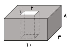 $2 \times 1 \times 8 = 16$ :حجم مکعب کم شده