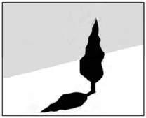 درخصوص اندازه و فاصلهٔ منبع نور تصویر زیر (درخت و سایه آن بر زمین)، کدام مورد درست است؟