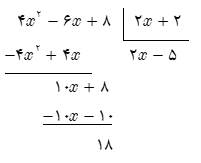 $4{x^2} - 6x + 8 \div 2x + 2$