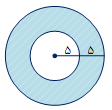 مساحت دایره کوچک – مساحت دایره بزرگ = قسمت رنگی