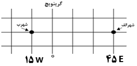 الف) اختلاف ساعت شهر «الف» و «ب» را محاسبه کنید. (راهحل نوشته شود)