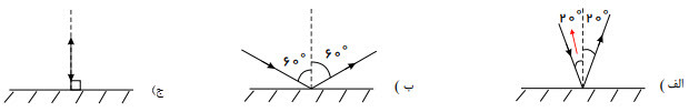 ج) زاویۀ بین پرتو تابش و پرتو بازتاب صفر درجه است.