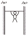 مطابق شکل زیر، شخصی به یک میلهی افقی آویزان است و خود را از آن بالا میکشد. چه نیرویی شخص را بالا میبرد؟