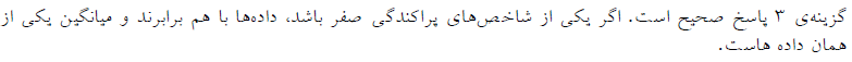 اگر ضریب تغییرات دادههای ${{x}_{1}}\,,\,{{x}_{2}}\,,\,..........\,,\,{{x}_{n}}$ برابر صفر باشد. میانگین دادهها کدام است؟