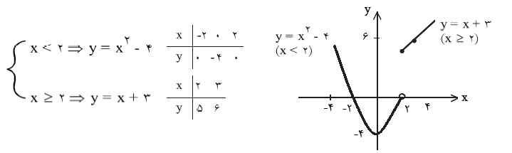 $f(x) = \left\{ {\begin{array}{*{20}{c}} {{x^2} - 4}&{x < 2} \\ {x + 3}&{x \geqslant 2} \end{array}} \right.$