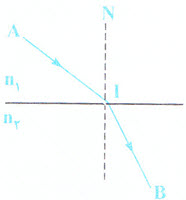 در شکل روبهرو، پرتو نوری از نقطهٔ $A$ در محیطی به ضریب شکست ${{n}_{۱}}$ به نقطهٔ $B$ در محیط دوم که ضریب شکست آن ${{n}_{2}}$ است، میرسد. اگر $AI=IB=L$ بوده و تندی انتشار نور در محیط اول برابر ${{v}_{۱}}$ باشد، زمان رسیدن نور از $A$ تا $B$ کدام است؟