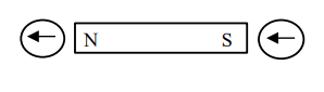 با توجه به جهتگیری عقربههای مغناطیسی در شکل مقابل، قطبهای آهنربای میلهای را تعیین کنید.