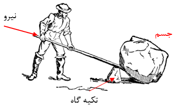 در شکل زیر سه قسمت اهرم را نشان دهید.