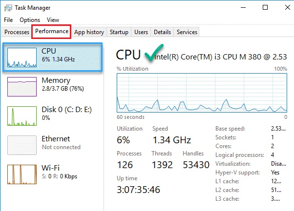 در کدام زبانه از برنامه Task Manager می توان نمودار میزان استفاده از منابع سخت افزاری را مشاهده کرد؟