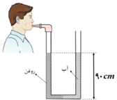 شخصی مطابق شکل درون لولهٔ U شکلی میدمد.