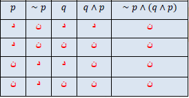 $ \sim p \wedge (q \wedge p) \equiv F$