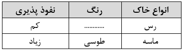 جدول زیر مقایسهی دو نوع خاک را نشان میدهد. در جای خالی چه کلمهای باید نوشت؟