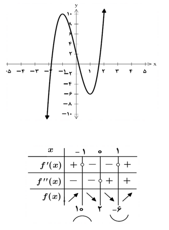 جدول رفتار و نمودار تابع $f(x) = 4{x^3} - 12x + 2$ را رسم کنید.
