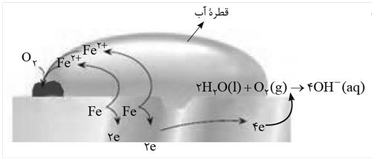 مطابق شکل زیر که مربوط به خوردگی آهن است، اگر سرعت متوسط مصرف گاز اکسیژن برابر با 2 مول در هر سال باشد، چند سال زمان لازم است تا آهنی به جرم 28 کیلوگرم بهطور کامل خورده شود؟