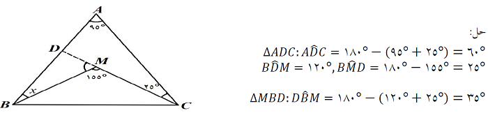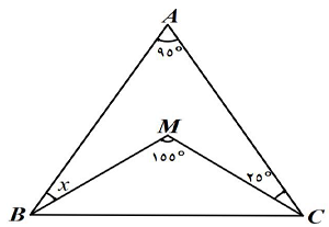 با توجه به شکل زیر، اندازه زاویه x چند درجه است؟