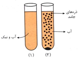 شکل 1 محلول یا مخلوط همگن / شکل 2 مخلوط ناهمگن - تعلیقه