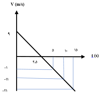 نمودار مکان-زمان متحرکی مطابق شکل زیر است. اختلاف مسافتی که در 5 ثانیه سوم طی میکند با مسافت طیشده در 5 ثانیه اول چقدر است؟
