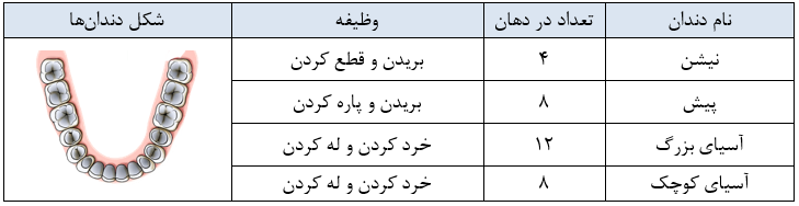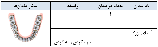جدول زیر در مورد دندانهاست آن را کامل کنید: