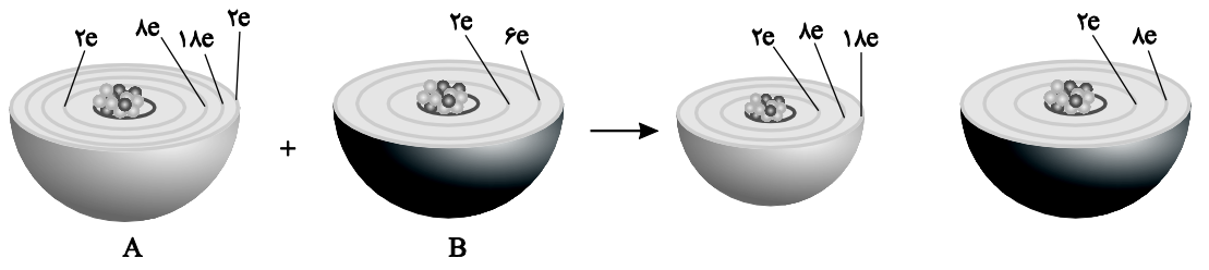در واکنش فوق، گونۀ B به آرایش الکترونی گاز نجیب هم دورۀ خود میرسد، اما گونۀ A به آرایش الکترونی گاز نجیب نمیرسد.