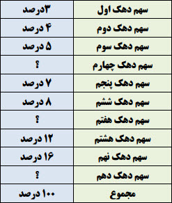 ب) سهم دهک هفتم در شرایطی که تفاوت سهم دهک سوم و هفتم 5 درصد باشد.