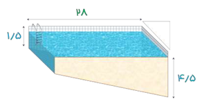 شکل زیر مربوط به استخری در منطقهای از تهران است. دیوارهٔ این استخر به شکل ذوزنقه است. اگر طول استخر 28 متر و عمق استخر در قسمت کم عمق و عمیق به ترتیب 1/5 و 4/5 متر باشد، مساحت این دیواره چقدر است؟