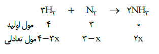 اگر در یک ظرف 5 لیتری در بسته در دمای معیّن، 4 مول گاز هیدروژن و 3 مول گاز نیتروژن را مطابق فرایند هابر مخلوط و گرم کنیم و در حالت تعادل، 2 مول گاز نیتروژن در مخلوط تعادلی وجود داشته باشد، ثابت تعادل این واکنش کدام است؟