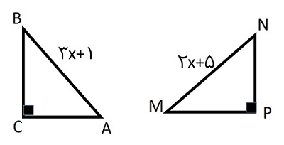 نسبت تشابه مثلث $ABC$ و $MNP$ عدد 1 است مقدار $x$ را به دست آورید.