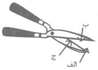 هاشم میخواهد در شکستن قند و خرد کردن آن به مادرش کمک کند. او قندشکن زیر را انتخاب میکند. با توجه به شکل زیر، جواب سوالات زیر به ترتیب در کدام گزینه قرار دارد؟
