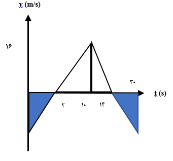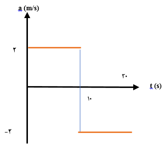 نمودار شتاب-زمان متحرکی که در $t=0$ سرعت آن ${{V}_{0}}=-4\frac{m}{s}$ است، به صورت زیر است. طی 30 ثانیه، چند ثانیه بردار جابهجایی متحرک در جهت $-\widehat{i}$ است؟