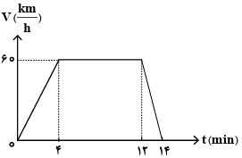 متحرکی بر روی مسیر مستقیم حرکت میکند. نمودار سرعت ـ زمان این متحرک مطابق شکل زیر است. این متحرک در مدت 13 دقیقه چند کیلومتر طی میکند؟