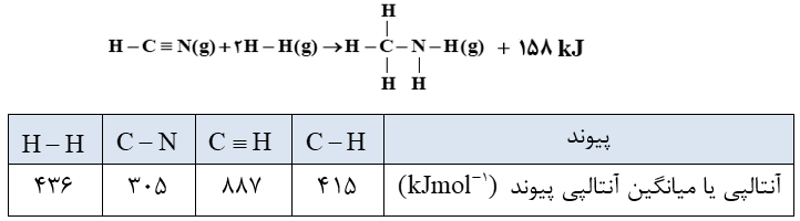 الف) میانگین آنتالپی پیوند $N - H$ را محاسبه کنید.