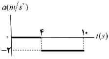 شکل زیر نمودار شتاب ـ زمان یک متحرک را نشان میدهد که در امتداد محور x حرکت میکند. اگر ${v_0} = + 3\frac{m}{s}$ باشد: