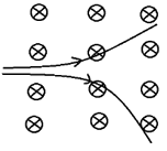 دو پرتو $\alpha $ و $\beta $ گسیل شده از یک ماده پرتوزا در یک جهت مطابق شکل زیر وارد میدان مغناطیسی یکنواخت میشوند. مسیر انحراف کدام پرتو شعاع انحراف کمتری دارد؟ توضیح دهید.