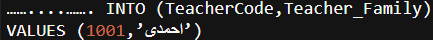 در قطعه کد روبرو برای درج یک رکورد در جدول Teacher از کدام گزینه استفاده میشود؟