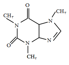 با توجه به ساختار مولکول کافئین که در شکل زیر نشان داده شده است، چند مورد از مطالب زیر، دربارهٔ آن درست است؟ ($H = 1\,,\,C = 12\,,\,N = 14\,,\,O = 16:g.mo{l^{ - 1}}$)