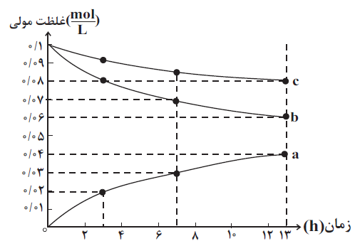 سرعت متوسط مصرف گاز نیتروژن مونوکسید در بازة زمانی 3 تا 7 ساعت برابر سرعت متوسط تولید گاز نیتروژن دیاکسید در همان بازة زمانی است.