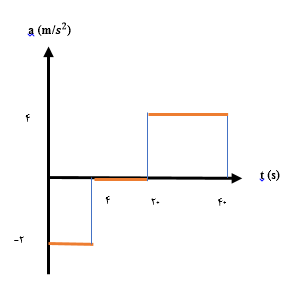 نمودار شتاب- زمان متحرکی که از سکون شروع به حرکت کرده مطابق شکل زیر است. کدام گزینه در مورد آن صحیح است؟