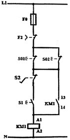 کدام مدار فرمان راهاندازی لحظهای و دائمکار یک موتور الکتریکی را نشان میدهد که با فشار بر پدال، کار دائمی موتور قطع و موتور لحظهای کار میکند؟