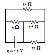 در شکل روبهرو، اختلاف پتانسیل دو سر مقاومت 24 اُهمی چند ولت است؟